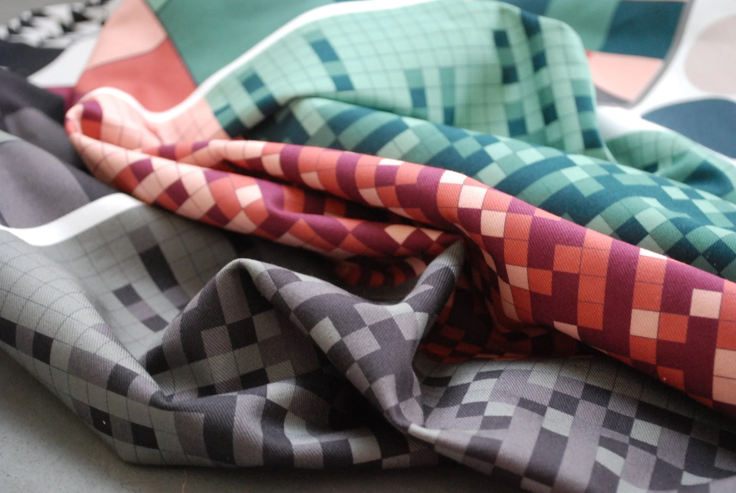 Digitally printed collection, a research project dedicated to Ukrainian poetry vibrations. Every pixel is a graphical illustration of vowels, consonants, and pauses in a graphic pattern for the collection.
